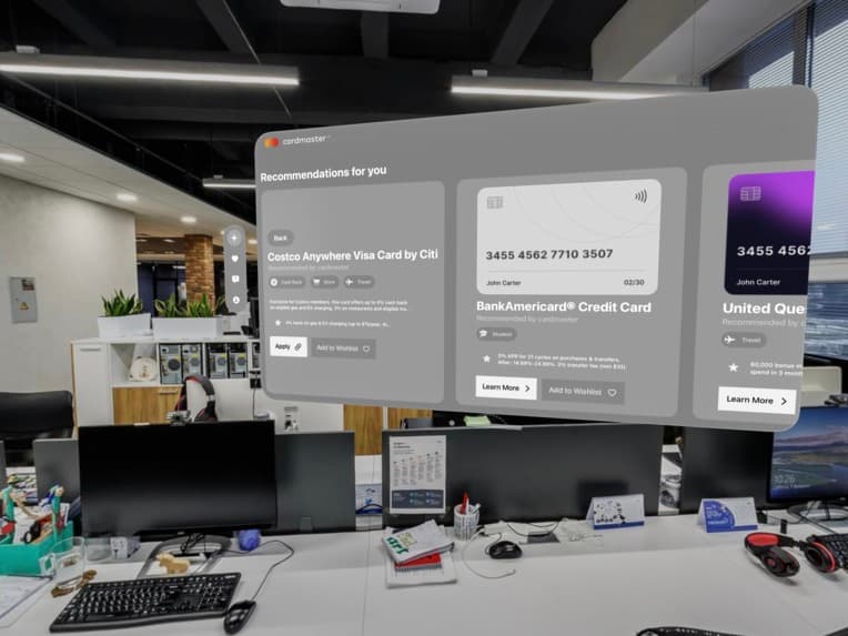 Personalized credit card recommendations via an immersive VisionOS experience. Mixed-reality UI built with SwiftUI and RealityKit for Apple Vision Pro—HackHarvard 2023.